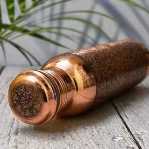 Experience the perfect blend of style and wellness with our Golden Printed Round Copper Water Bottle. Crafted from pure copper, this bottle features a stunning golden print that adds a touch of elegance to your daily hydration. Copper is known for its Ayurvedic health benefits, including improved digestion, boosted immunity, and natural detoxification. Its leak-proof design and durable build make it ideal for everyday use at home, in the office, or on the go. A perfect gift for health-conscious individuals, this bottle combines traditional health practices with modern aesthetics for a refreshing drinking experience.