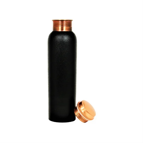 Experience the perfect blend of tradition and style with our Black Plain Round Copper Water Bottle. Made from pure copper, this sleek black-finished bottle is designed to promote better health through the natural benefits of copper, including improved digestion and immunity. The round shape offers a firm grip, making it ideal for both home and office use. Lightweight, durable, and leak-proof, it ensures long-lasting performance. Its modern matte black exterior adds a stylish touch to your wellness routine. Carry the power of Ayurveda with you and stay hydrated the natural way—one sip at a time.