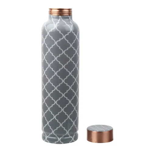 Stay refreshed in style with our Grey Printed Copper Water Bottle, crafted to combine elegance with wellness. Made from pure copper, this bottle offers natural health benefits like improved digestion, better immunity, and antioxidant support. Its sleek grey print gives it a modern, trendy look—perfect for home, office, gym, or travel use. The leak-proof cap ensures zero spillage, and the sturdy build provides long-lasting use. Enjoy the ancient Ayurvedic tradition of copper-infused water in a bottle designed for today’s lifestyle. A perfect gift or personal health accessory that blends functionality with aesthetics. Drink healthy, live better!