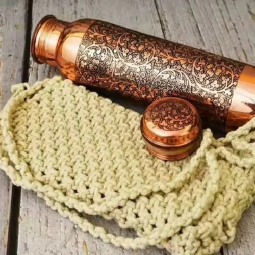 Experience the perfect blend of style and wellness with our Golden Printed Round Copper Water Bottle. Crafted from pure copper, this bottle features a stunning golden print that adds a touch of elegance to your daily hydration. Copper is known for its Ayurvedic health benefits, including improved digestion, boosted immunity, and natural detoxification. Its leak-proof design and durable build make it ideal for everyday use at home, in the office, or on the go. A perfect gift for health-conscious individuals, this bottle combines traditional health practices with modern aesthetics for a refreshing drinking experience.